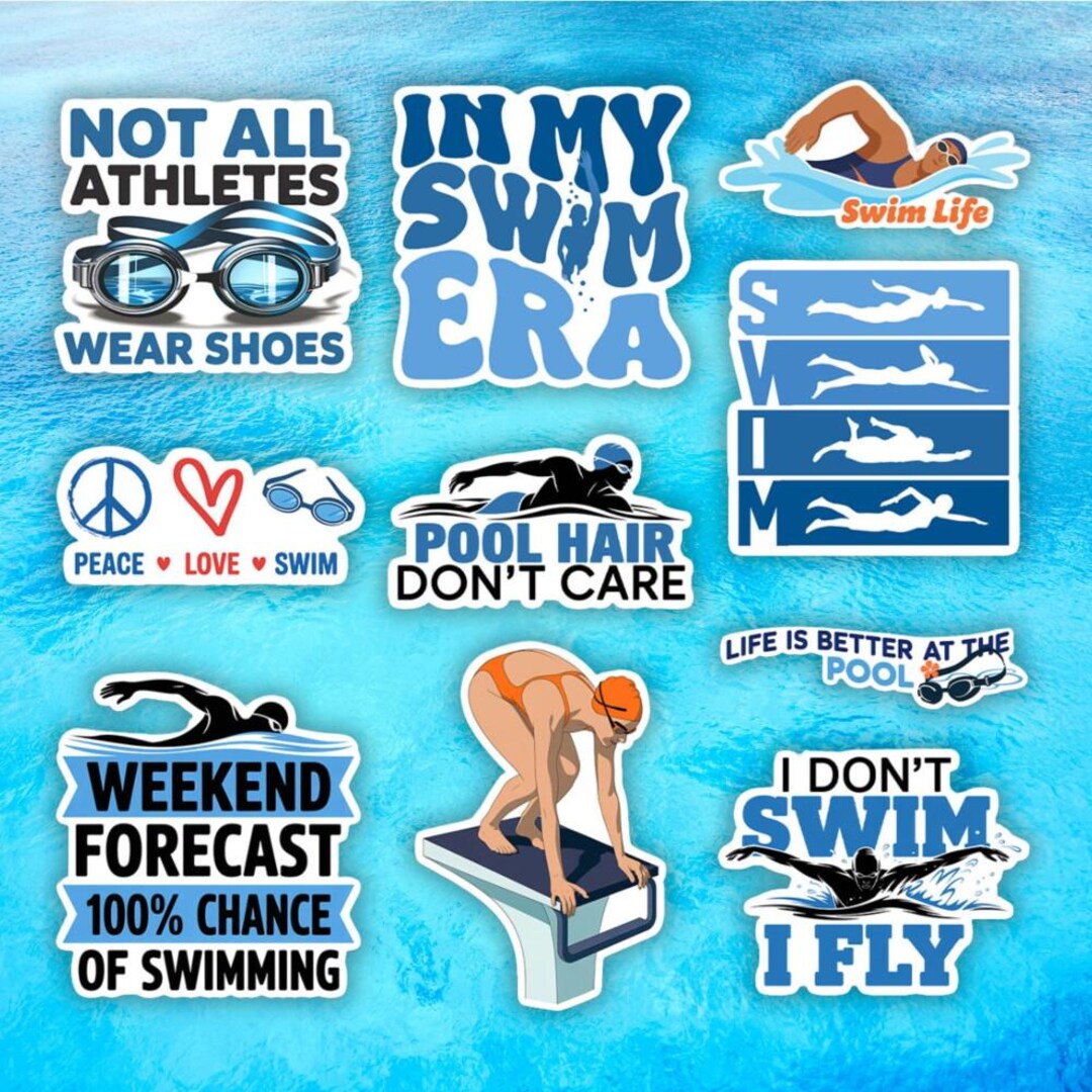 Swimming Stickers Pack: Waterproof Vinyl Decals, Swimmer Gift - Etsy