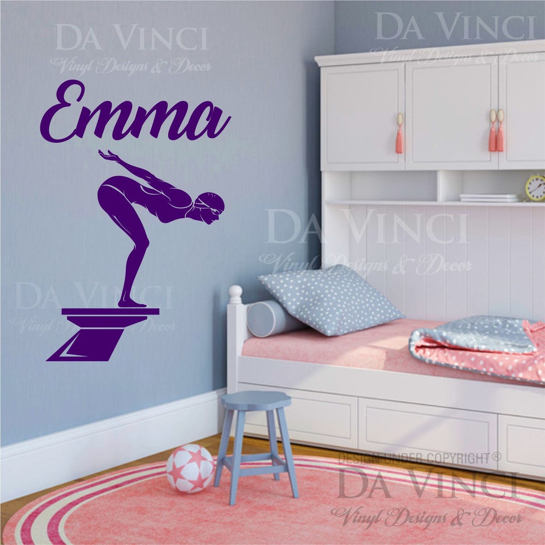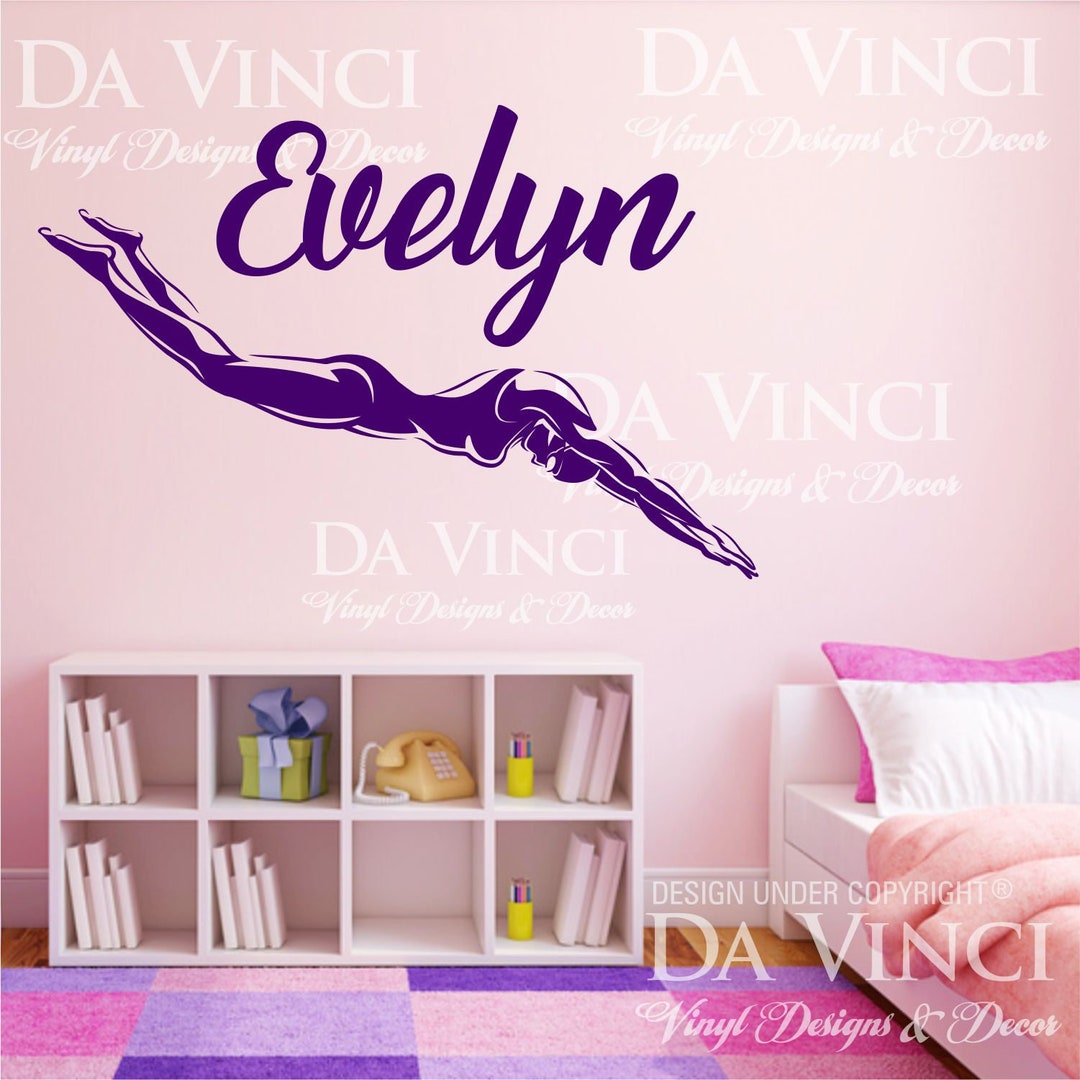 Swim Swimmer Swimming Decal Girl Custom Name Wall Personalized Vinyl ...