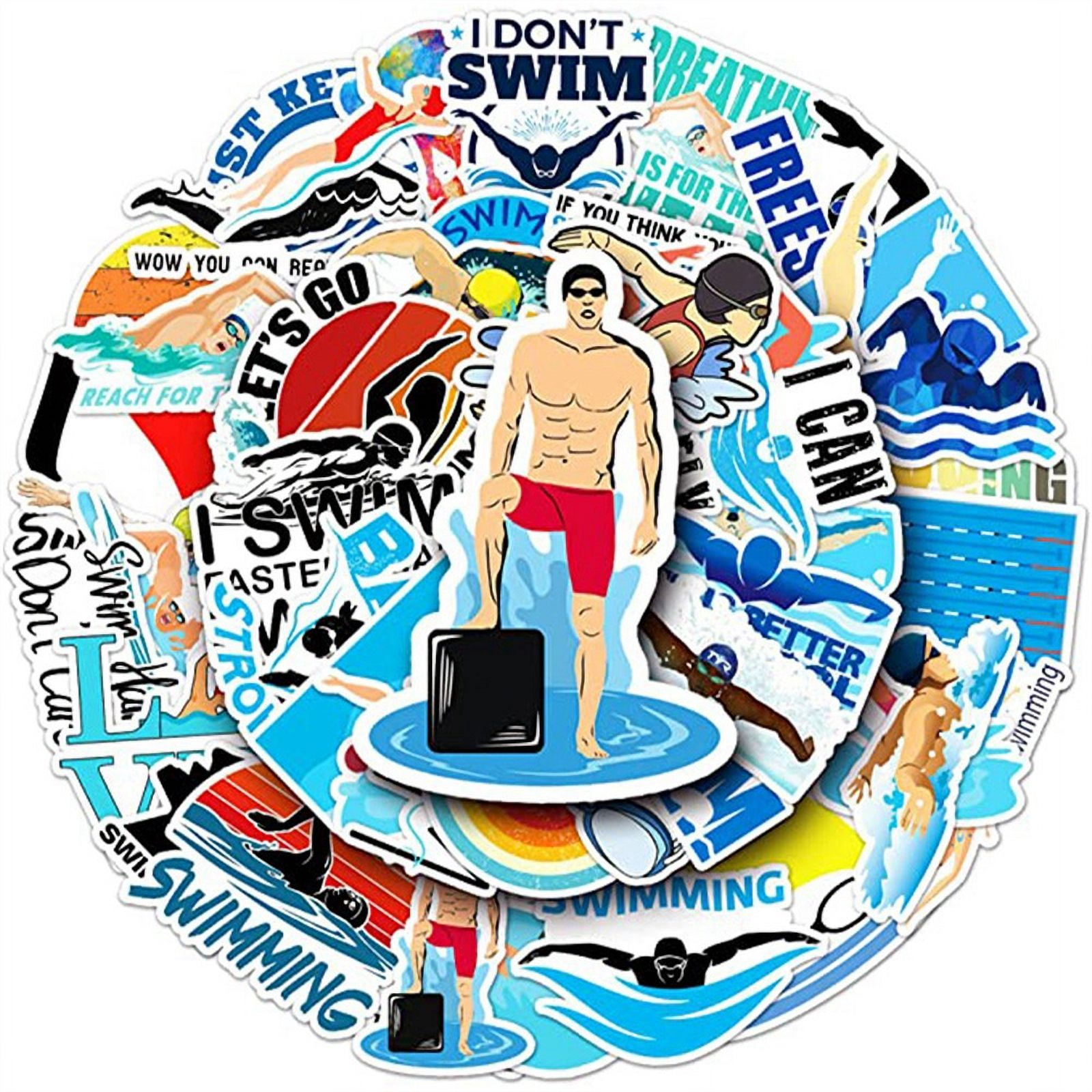 Buy Swimming Stickers (50pcs) Kids Stickers for Water Bottle,Waterproof ...