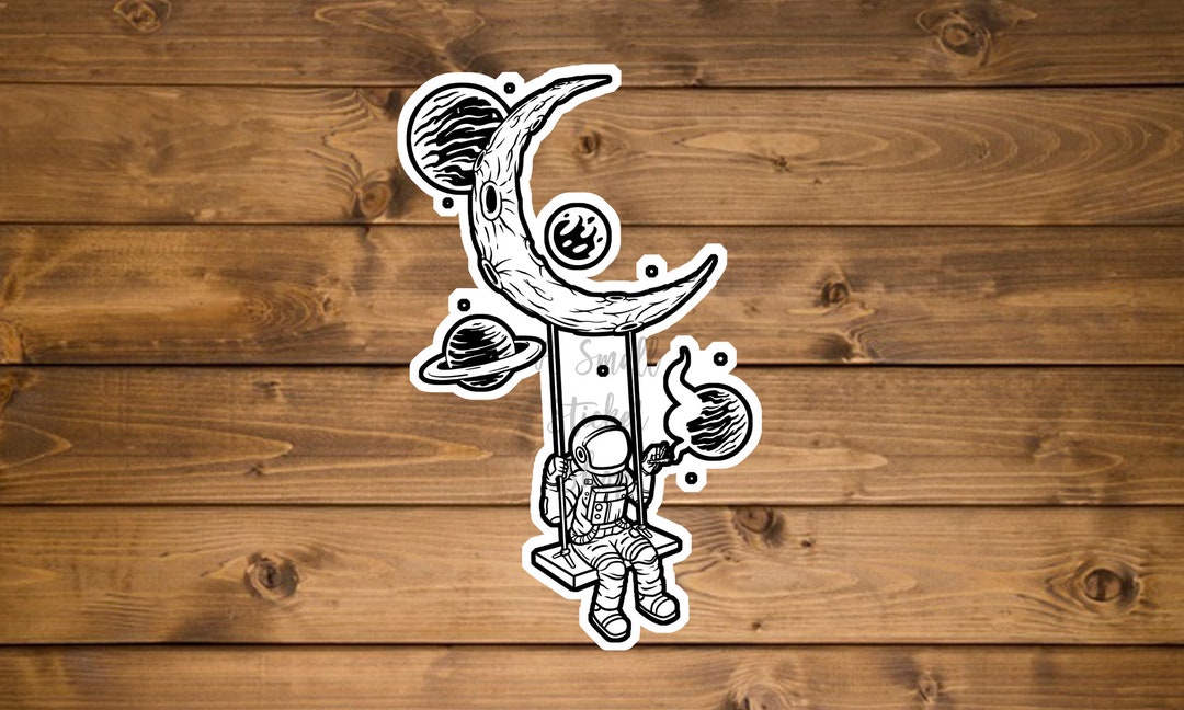 Astronaut on a Swing Sticker, Funny Bumper Sticker, Phone Case Sticker ...