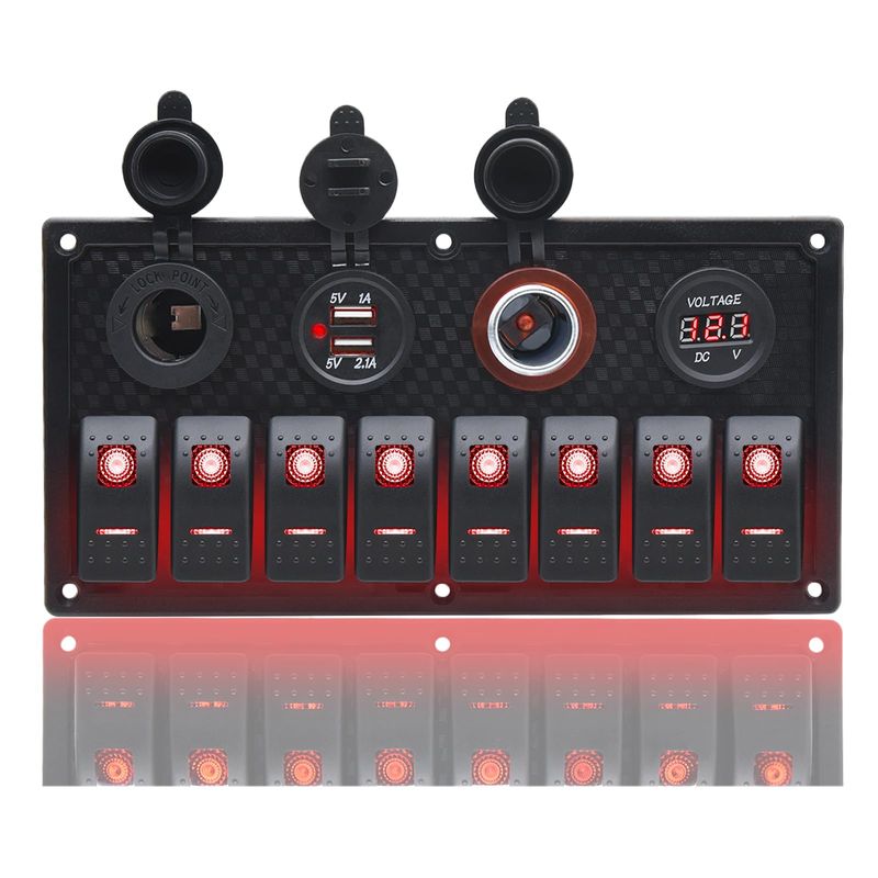 8 Gang Pre-wired Dual Light 12V Marine Rocker Switch Panel – DAIER