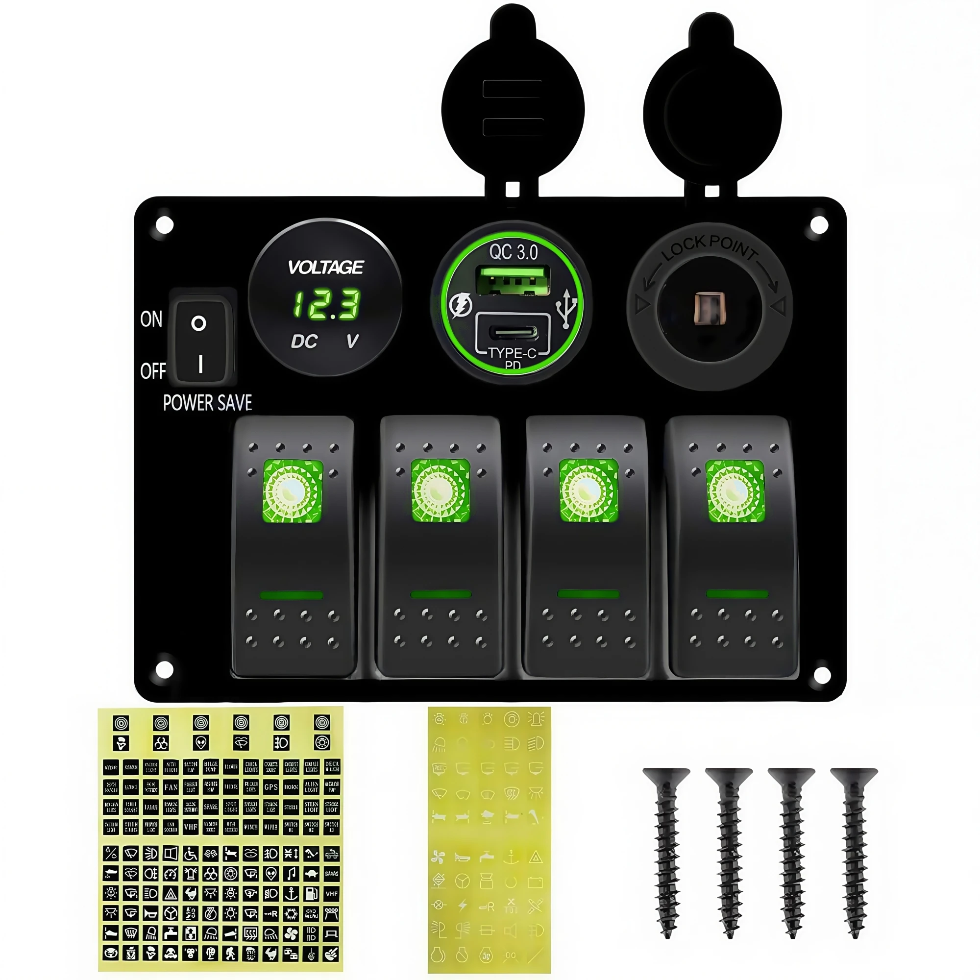 Marine Boat Waterproof 4 Gang Rocker Switch Panel with Power Save ...