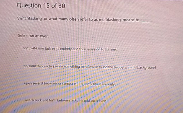 Question 15 of 30 Switchtasking or what many | StudyX