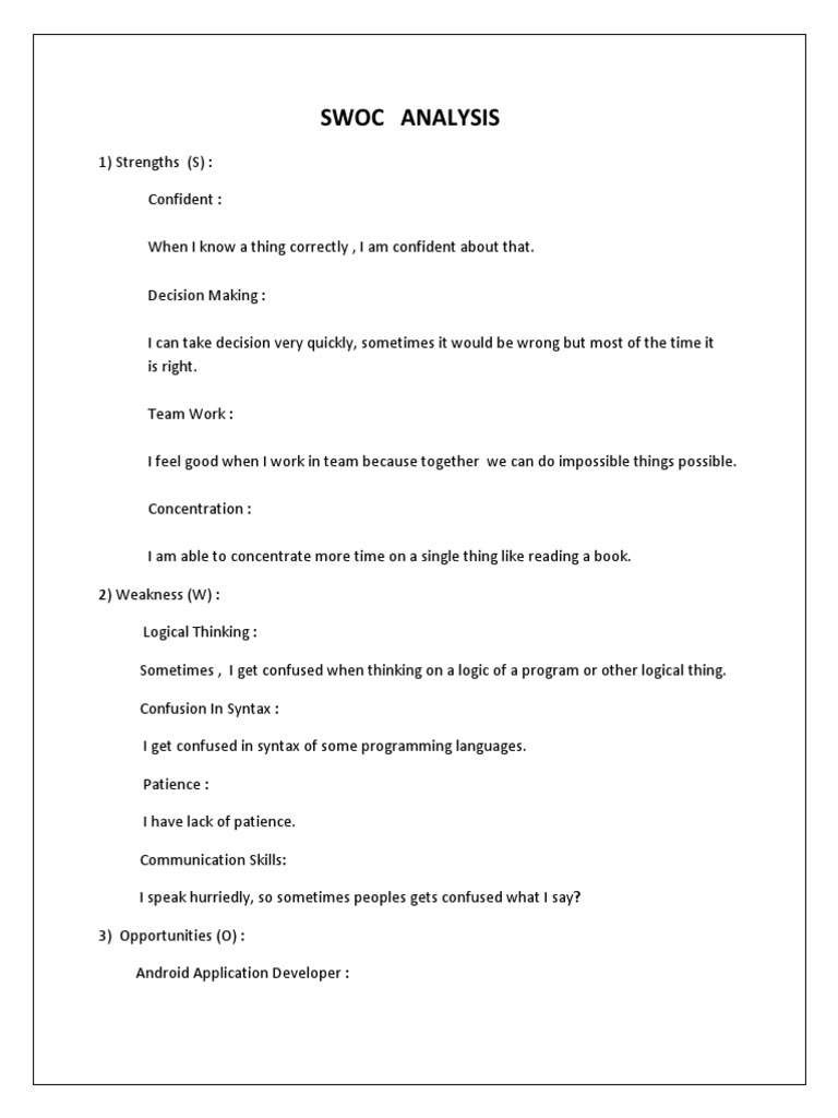 SWOC-Analysis - important - SWOC Analysis A journey towards becoming a ...