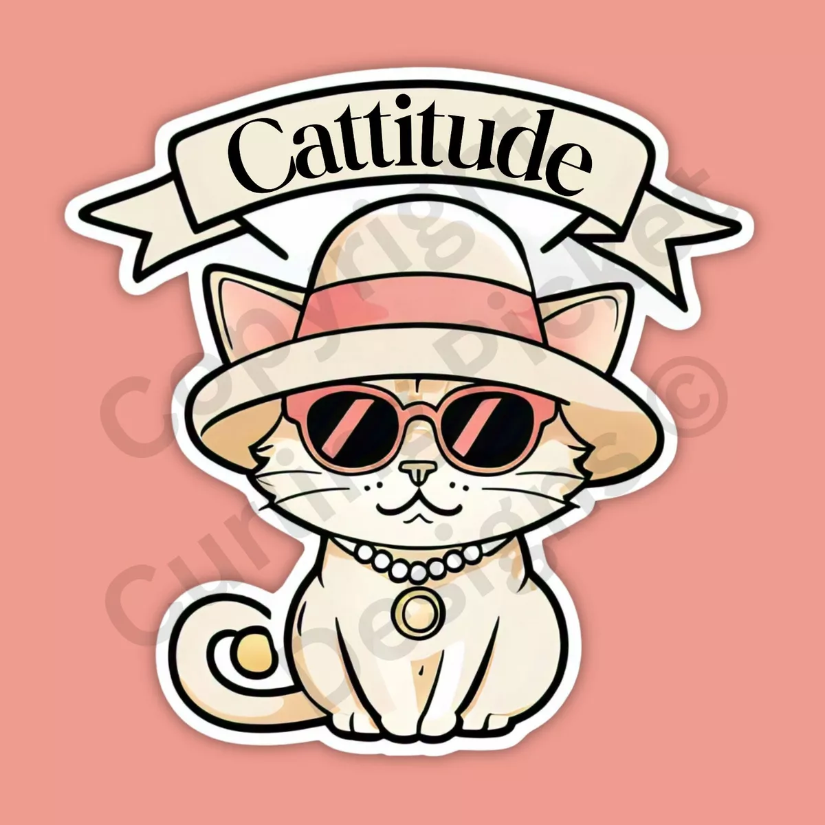 DOPASTICKER Cattitude Cat Sungles Hat Pearls Sy Sticker Waterproof ...
