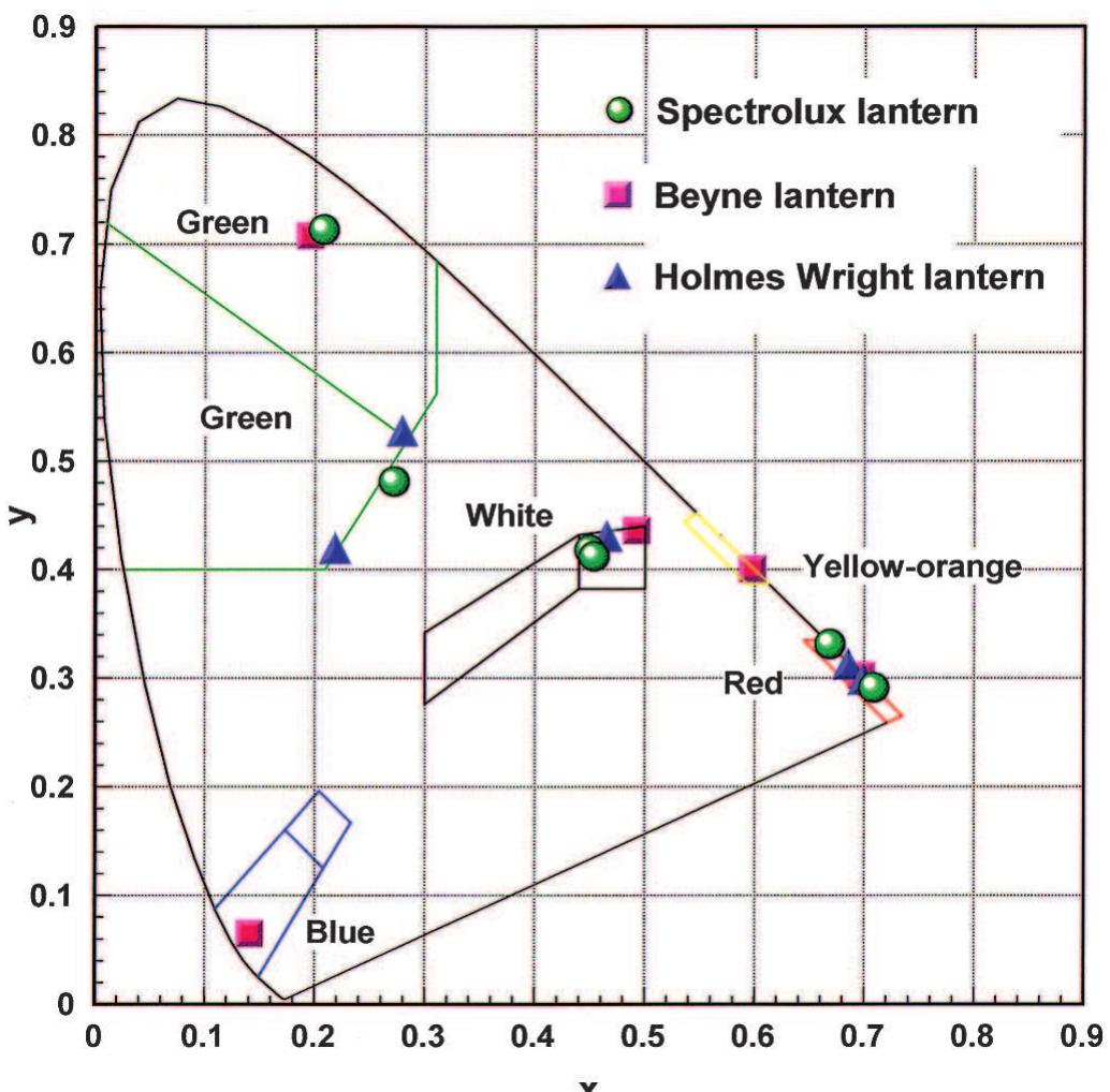 (part 2): Colorimetric data in CIE xy colour space for (a) main ...