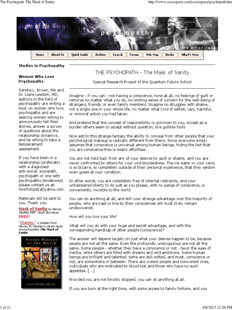 The Psychopath - The Mask of Sanity | PDF | Psychopathy | Antisocial ...