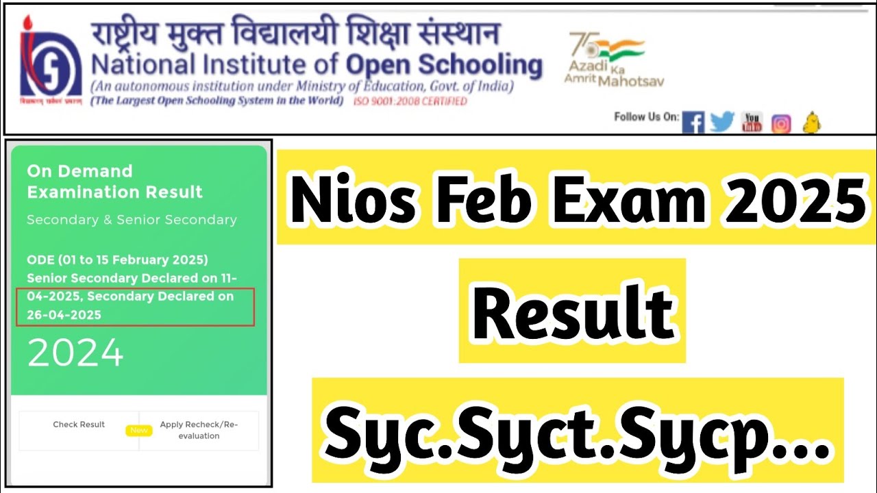 NIOS April Result Out 2025 | NIOS SYC, SYCT, SYCP, RW, UFM | ReExam ...