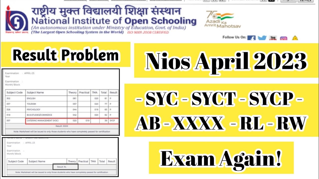 NIOS Result April 2023 Out | SYCT, SYCP, SYC, RW, RL, UFM, XXXX ...