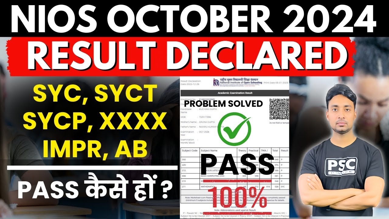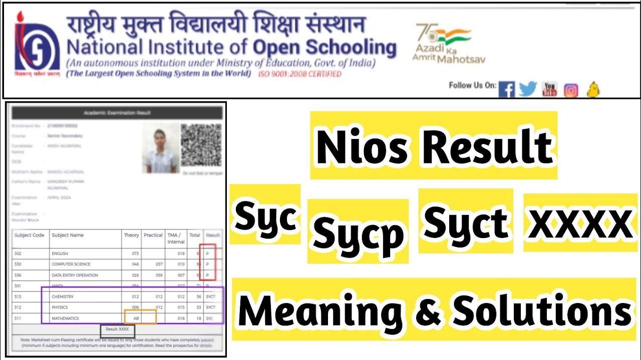 Nios april result 2024 | SYC, SYCP, SYCT, XXXX | Get Pass In NIOS - YouTube