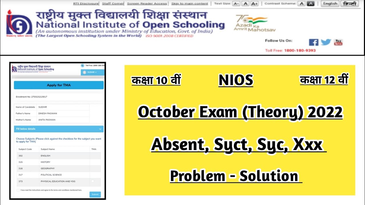 NIOS Update On-Demand Re Exam for SYC, SYCT, SYCP | NIOS TMA 2025 ...