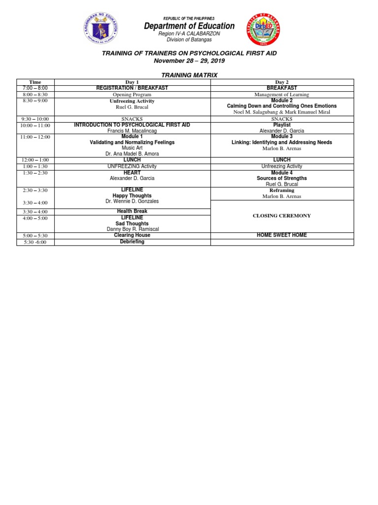 4 Training Activity Matrix - Training Activity Matrix Training Activity ...