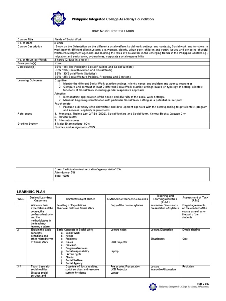 PICAF Course Syllabus Template | PDF | Social Work | Human Nature