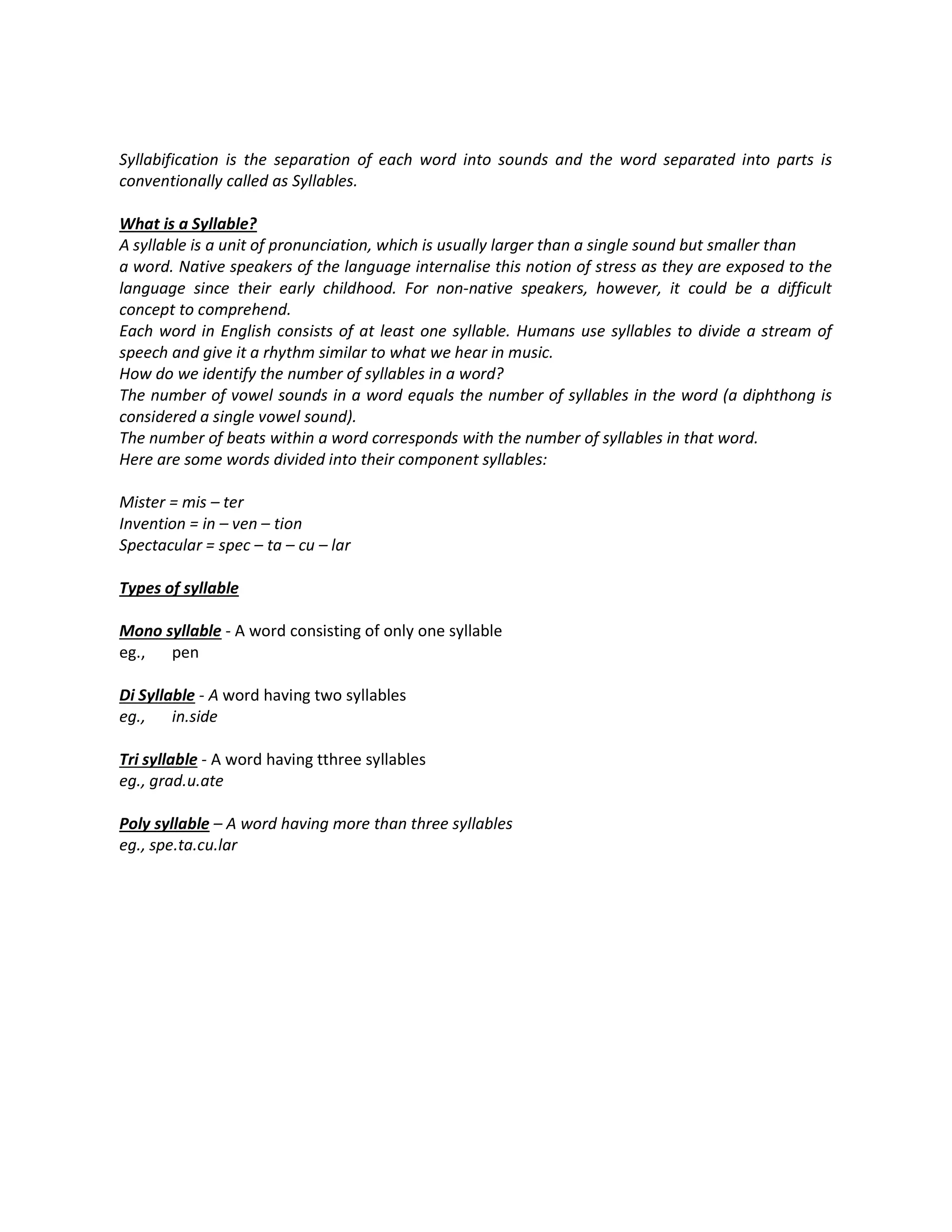 Syllabification and rules with examples - Explore More and Learn