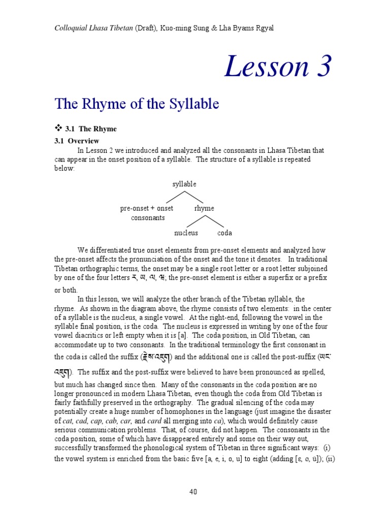 Lesson 3: The Rhyme of The Syllable | PDF | Tone (Linguistics) | Syllable