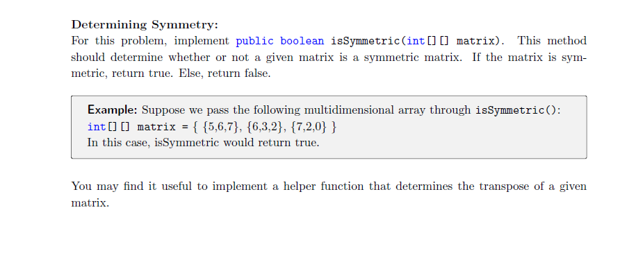 Solved Determining Symmetry: For this problem, implement | Chegg.com