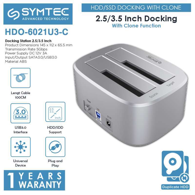 Jual Symtec Dua Bay 2.5/3.5 Usb3.0 Hdd/ssd Docking Cloning- Hdo-6021u3 ...
