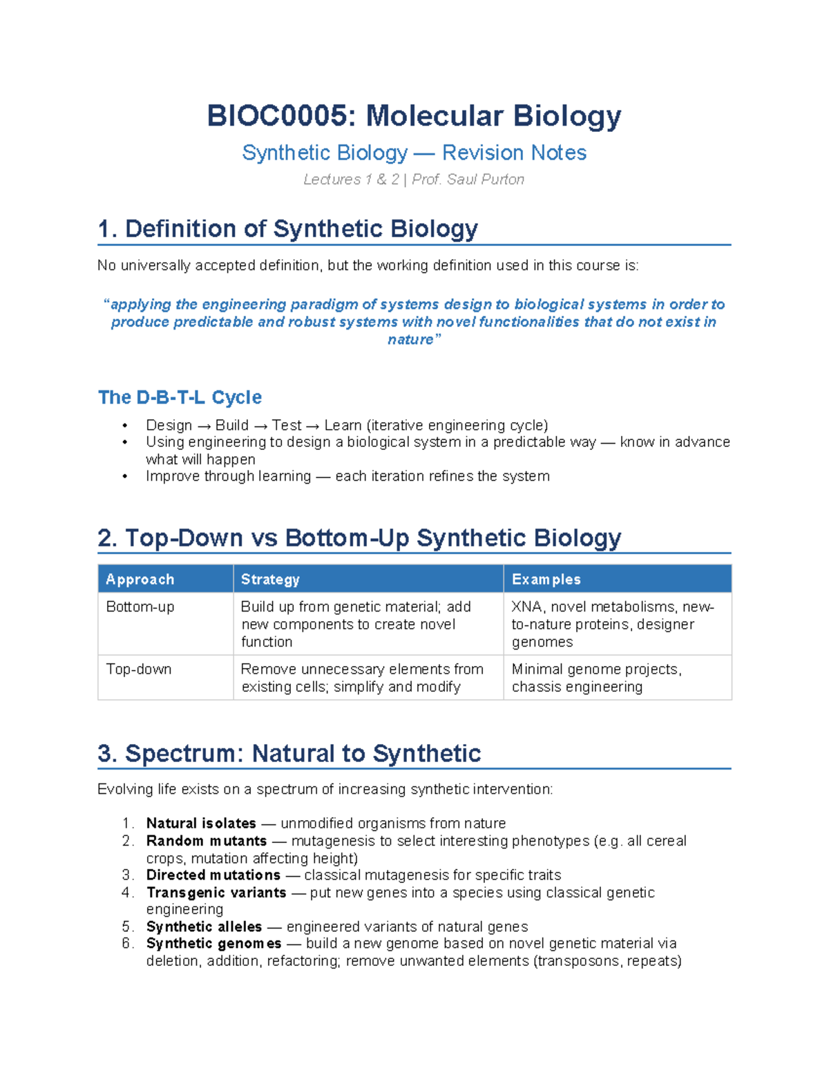 Molecular Biology (SynBio) Revision Notes: Lectures 1 & 2 by Prof ...