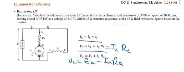 Solved DC generator efficiency DC & Synchronous Machines | Chegg.com