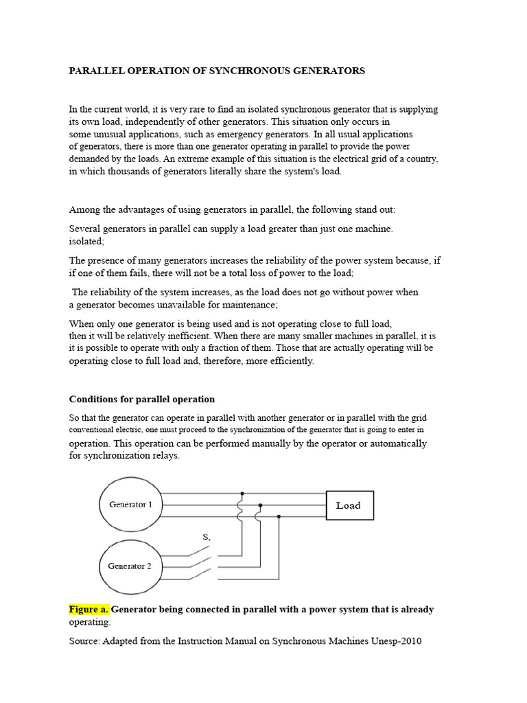 Parallel Operation of Synchronous Generators | PDF | Electric Generator ...