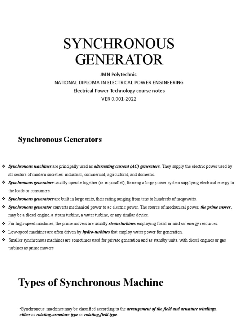 Lecture 1 - Construction of Synchronous Generator | PDF | Power ...