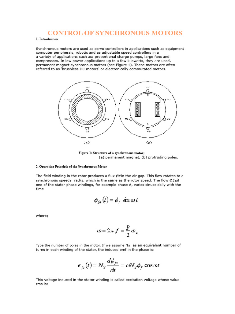 Synchronous Motor Control | PDF | Electric Motor | Electricity