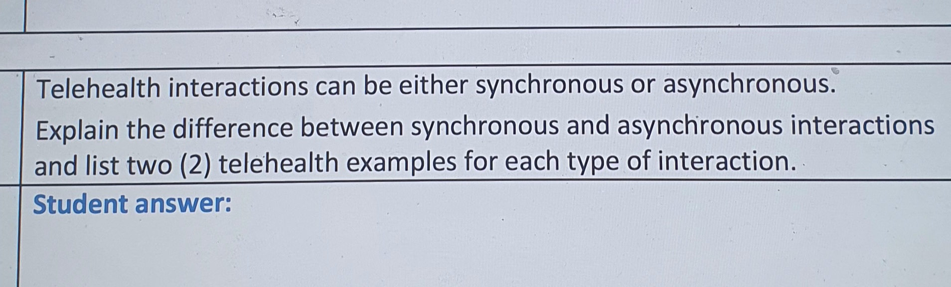 Solved Telehealth interactions can be either synchronous or | Chegg.com