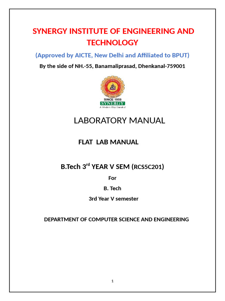 Synergy Institute of Engineering and Technology-1 | PDF | Computer ...