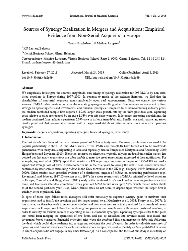 Sources of Synergy Realization in Mergers and Acquisitions | PDF ...