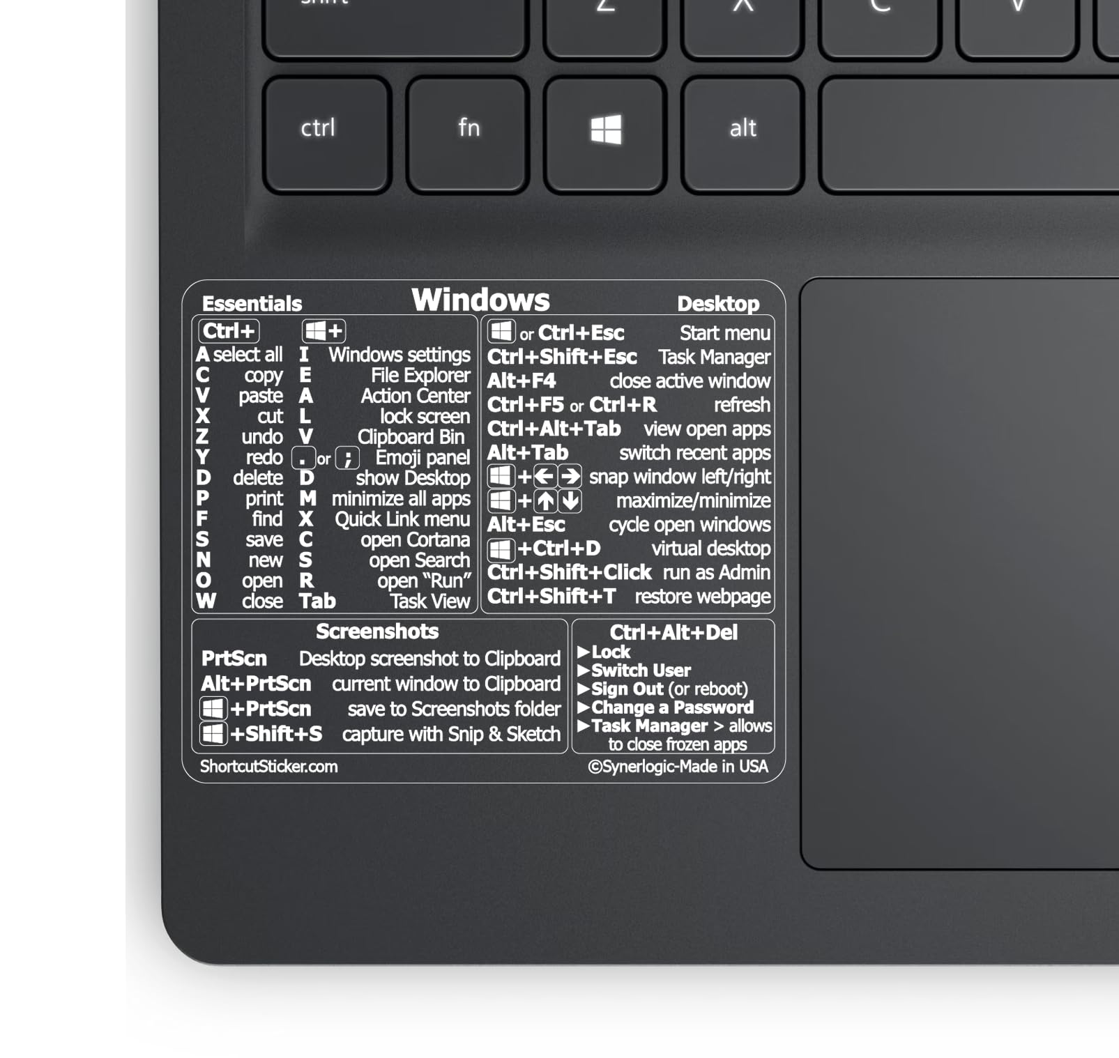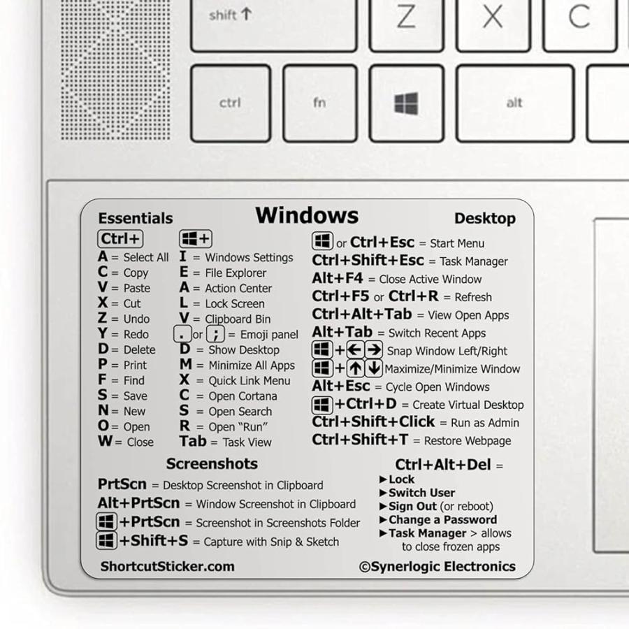 SYNERLOGIC Windows PC Reference Keyboard Shortcut Vinyl Sticker, No ...