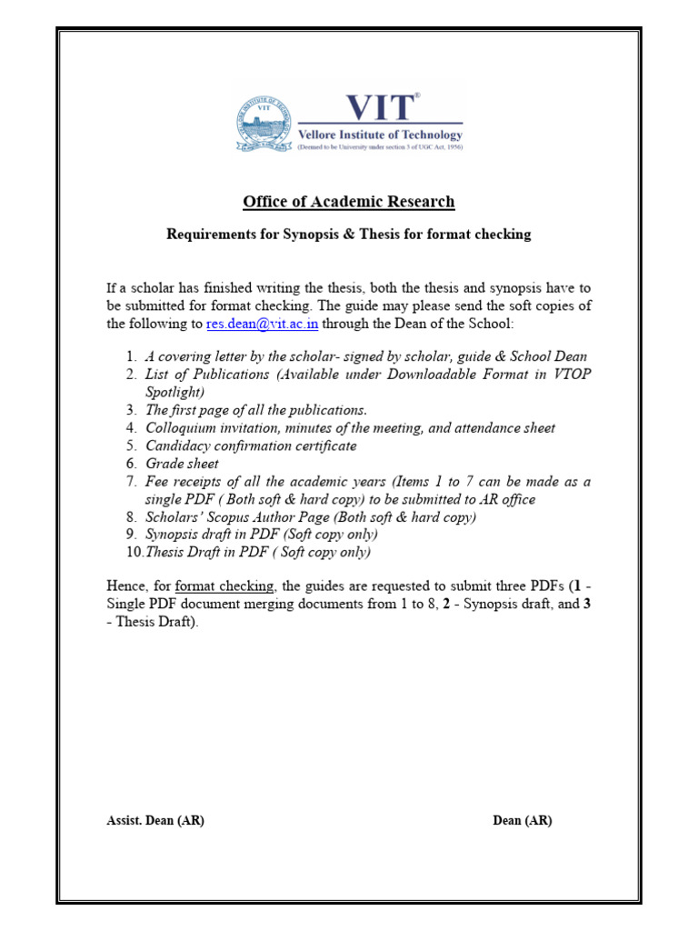 Requirements For Synopsis & Thesis Format Checking | PDF