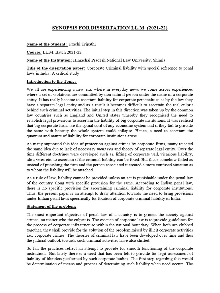 Synopsis For Dissertation | PDF | Crimes | Crime & Violence