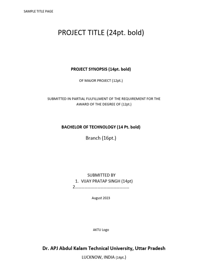 Synopsis Format 2022 23 - SYNOPSIS FORMAT ( For B. Tech-IT/CSIT Final ...