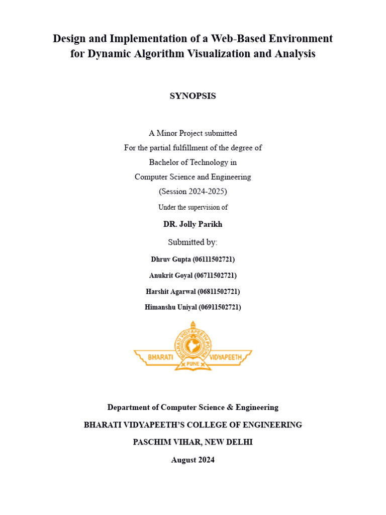 Minor - Synopsis (Draft 2) | PDF | Algorithms | Visualization (Graphics)