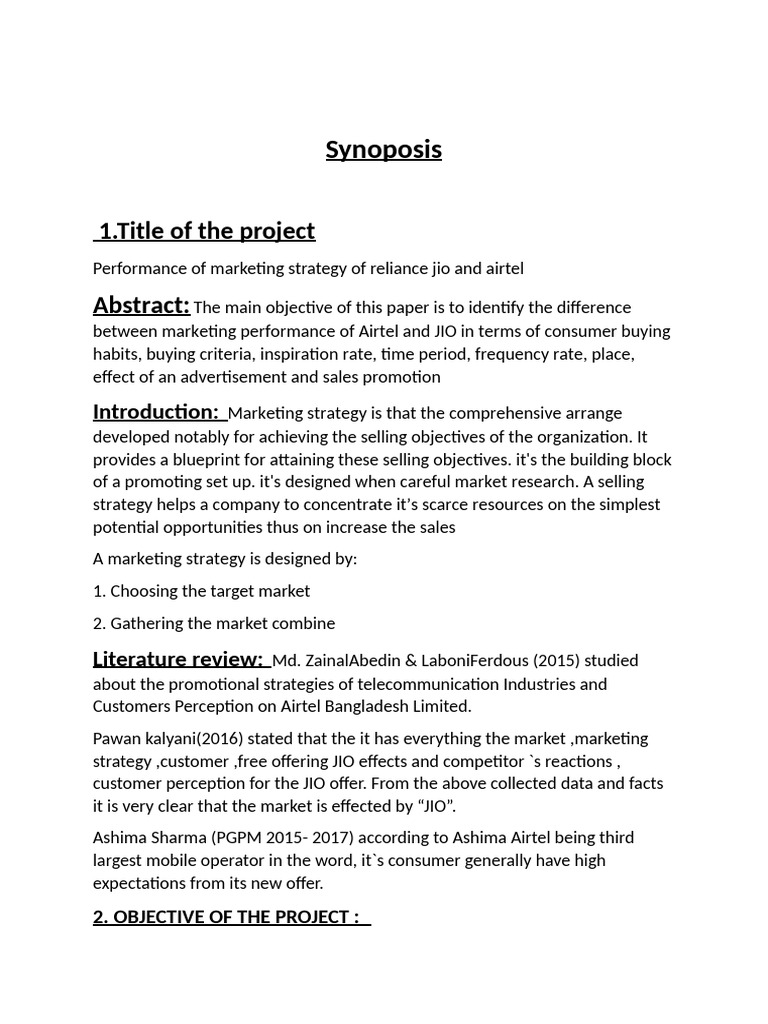 synoposis | PDF | Marketing | Marketing Strategy