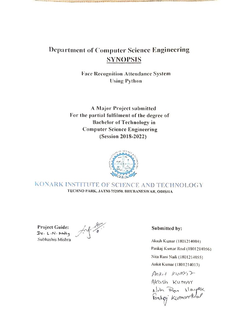 Project Synopsis Format and Guidelines - Synopsis Format Page 1: Front ...