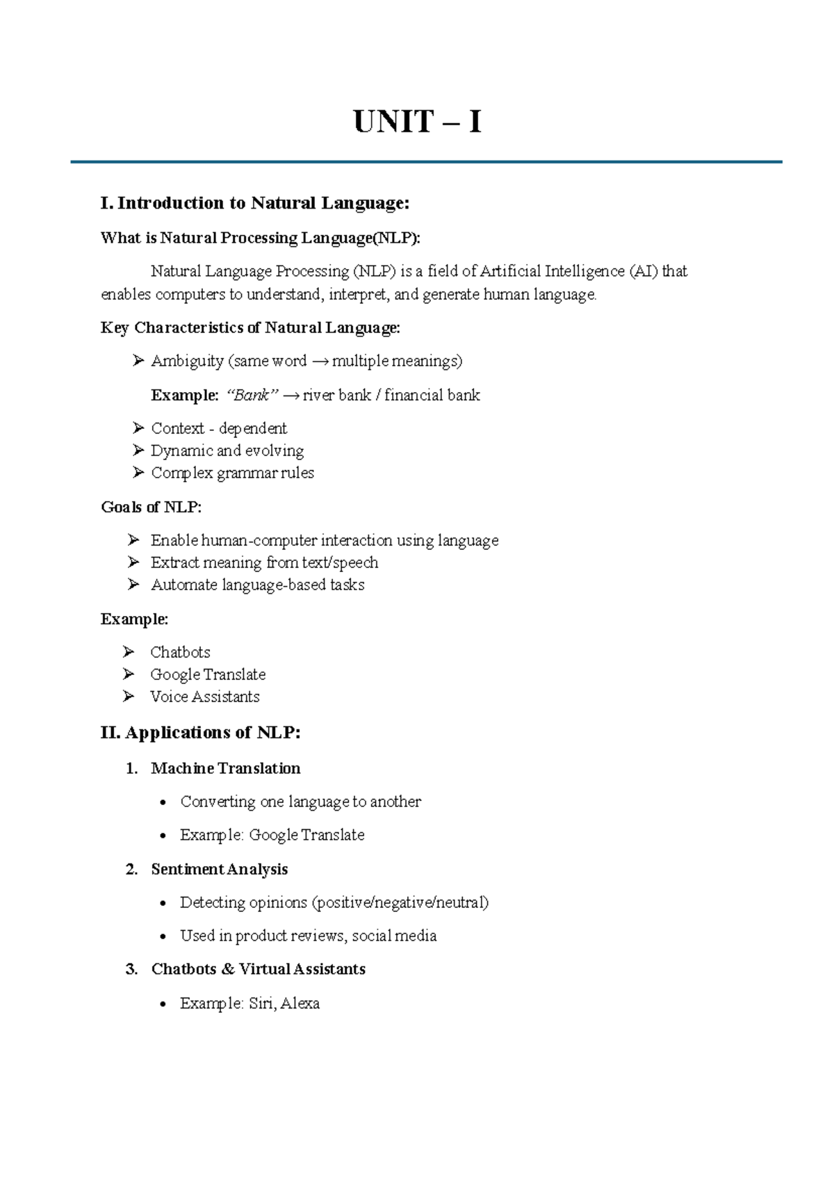 UNIT I - Introduction to Natural Language Processing (NLP) Overview ...