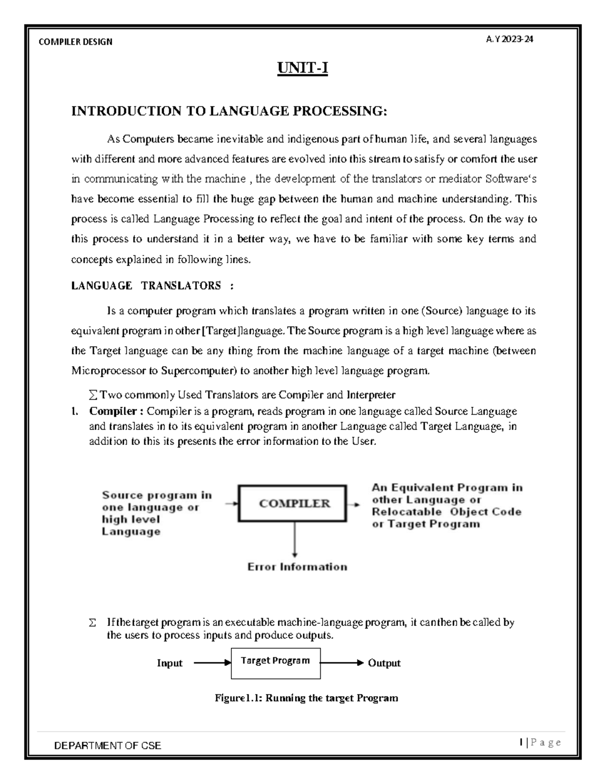 Compiler Design - CSE A.Y: Introduction to Language Processing - Studocu