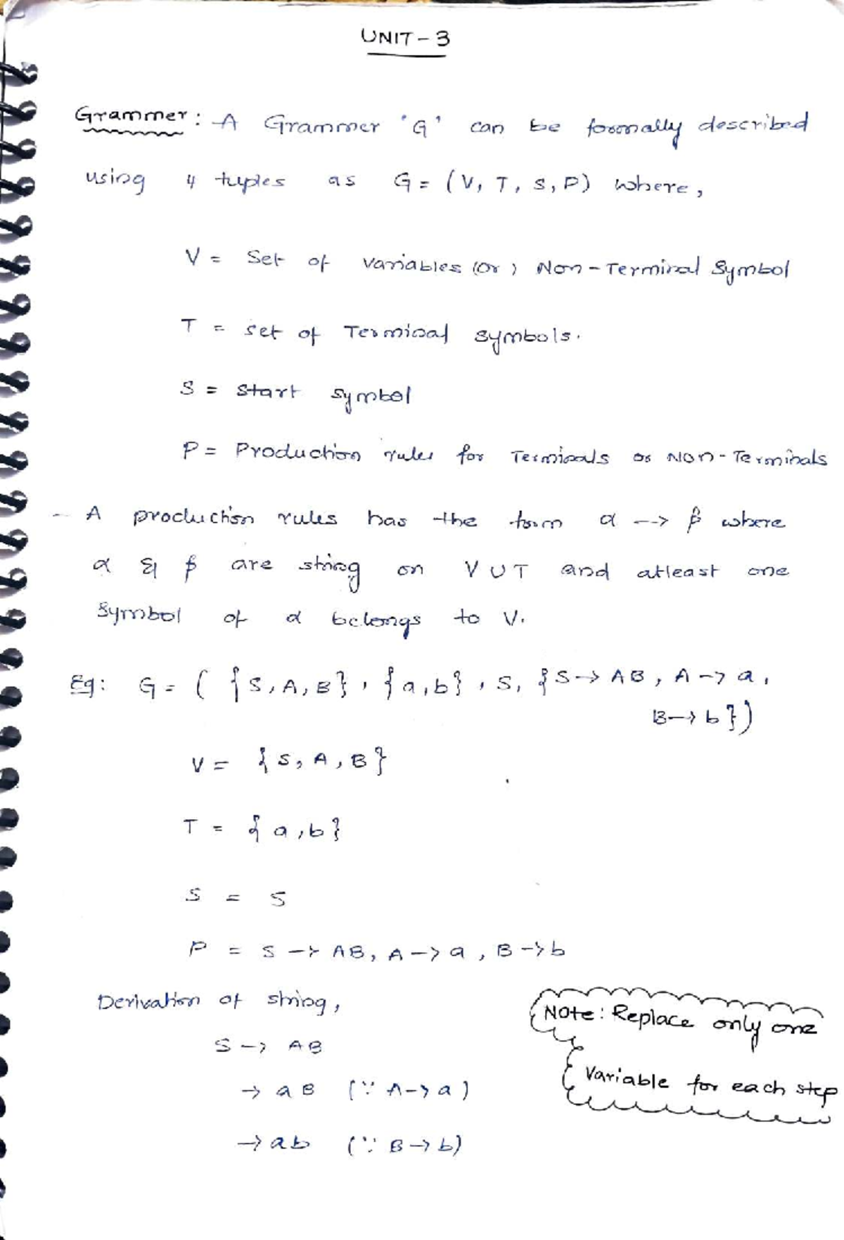 TOC Unit 3 Notes: Grammar and Derivation Trees - Studocu
