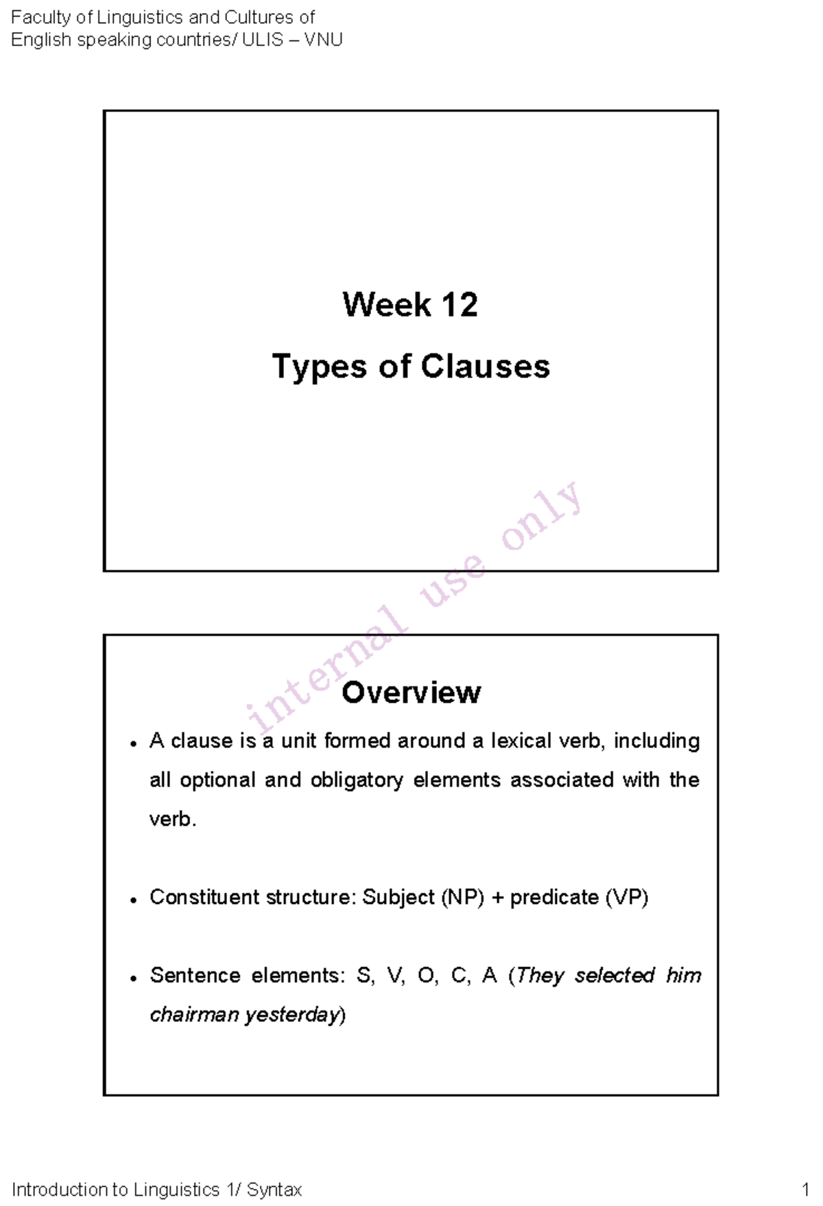 L12 - Syntax Clauses Overview - Faculty of Linguistics ULIS VNU - Studocu