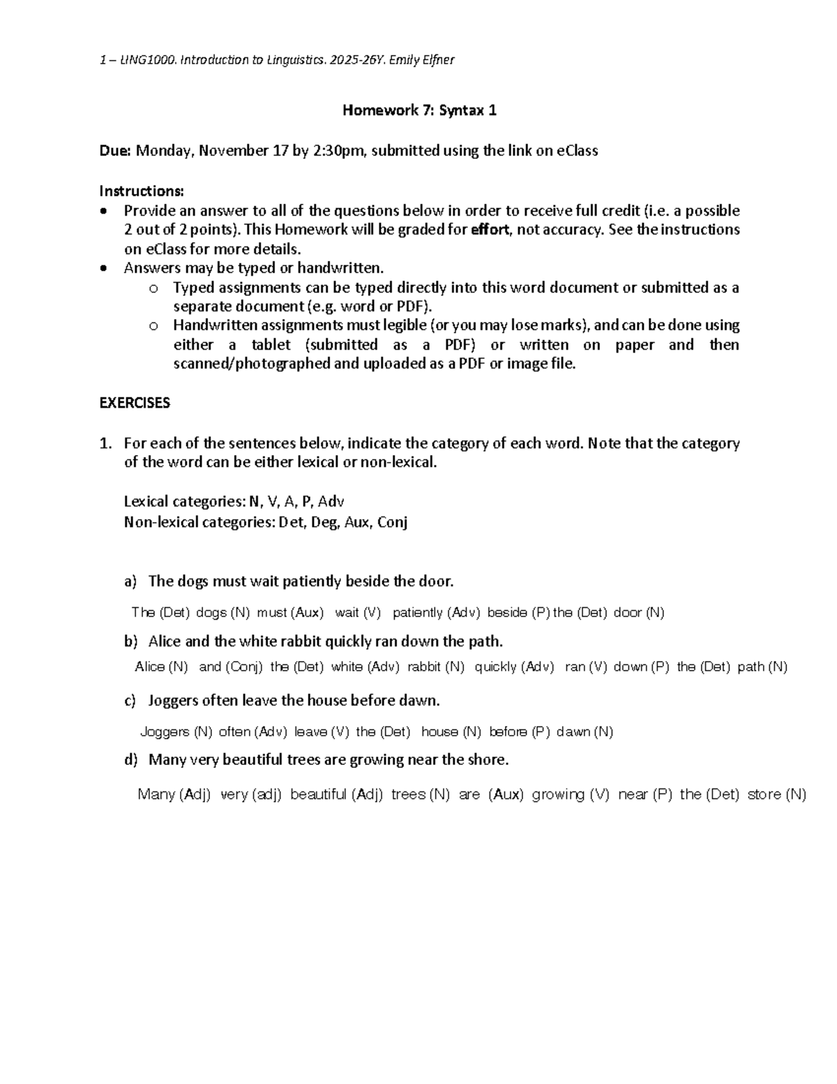 LING 1: Homework 7 - Syntax Exercises and Instructions - Studocu