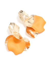 Gold & Orange Half Flower Statement Stud Earrings - Lovisa