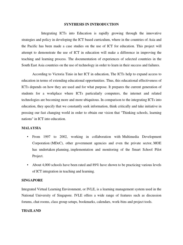 Synthesis in Introduction | PDF | Educational Technology | Philippines