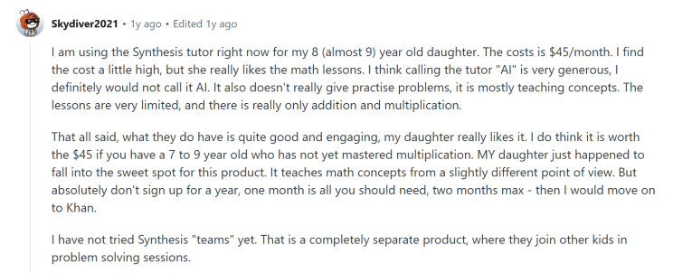 Synthesis AI Review--Superhuman Elementary Math Tutor