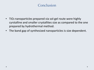 Synthesis and characterization of nano tio2 via different methods | PPTX