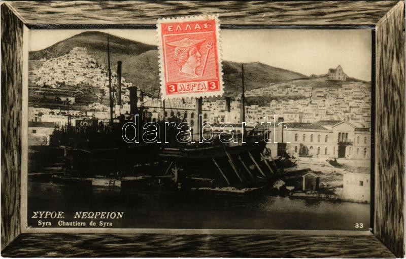 Syros, Syra; Chautiers. F. Caloutas / port, ships. TCV card ...