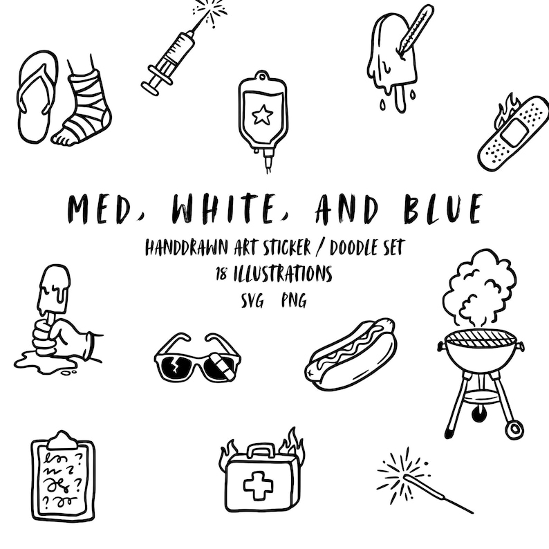 Med, White, and Blue Patriotic ER Digital Stickers | Fourth of July ...