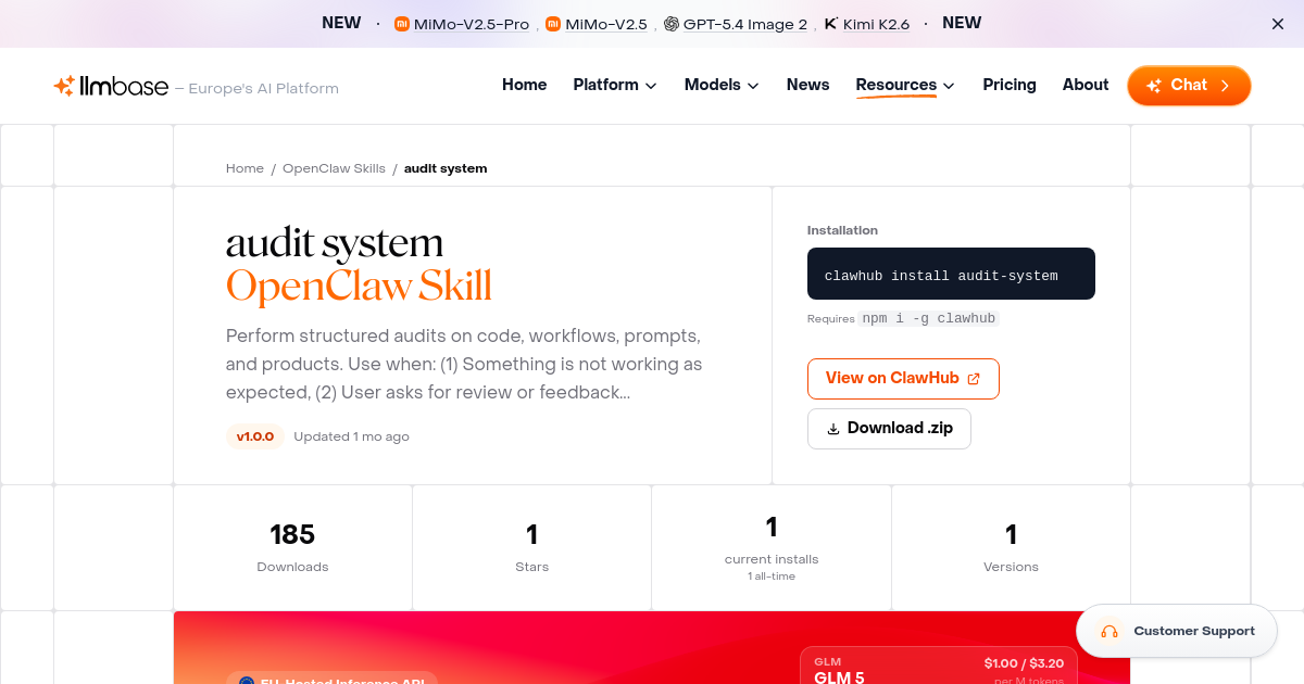 audit system - OpenClaw AI Agent Skill | LLMBase