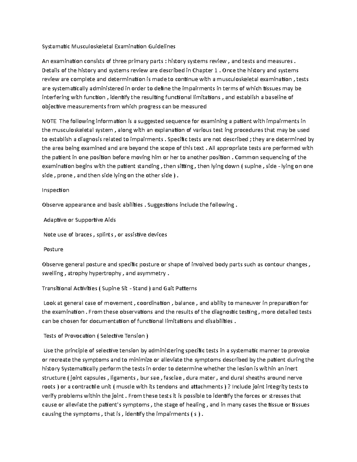 Systamatic Musculoskeletal Examination Guidelines - Details of the ...