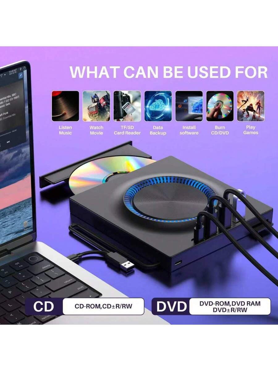 USB 3.0 External CD/DVD Drive: Typ C Portable CD/DVD+/-RW Drive With SD ...